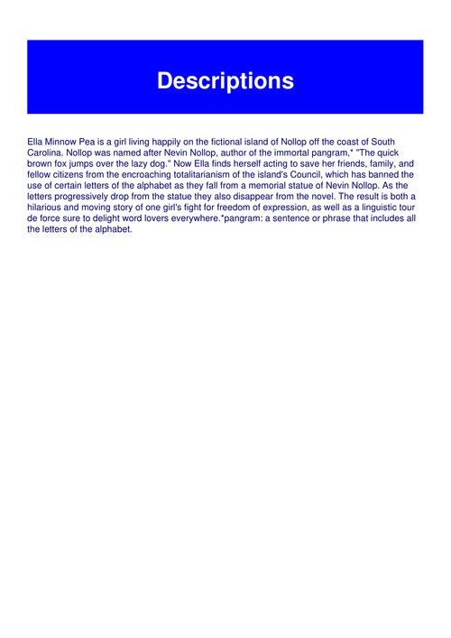 Title: Ella Minnow Pea A Novel In Letters P D F Book