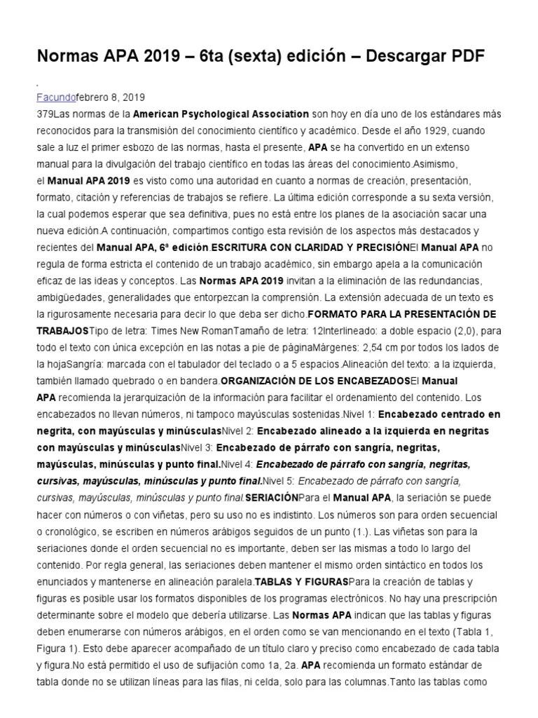 Normas apa 2019 descargar pdf. Puedes hacer click en la imagen o en el enlace de abajo. Esta plantilla incluye margenes tabla de ejemplo imagenes de ejemplo y titulos en diferente nivel. Sexta edicion para descargar en pdf las normas apa han sido actualizadas y estos son los principales cambios en estructura citas referencias y mas. Guia resumen apa 6ta edicion 2019 actualizado.